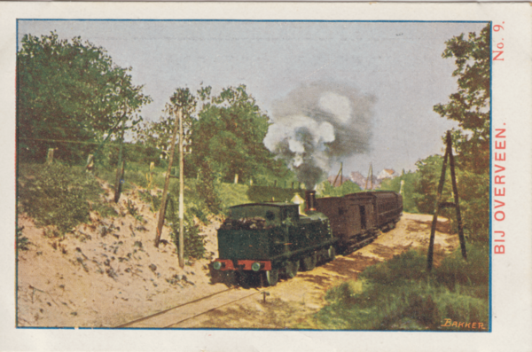 Te midden van bosch en duin snelt de trein van Haarlem Zandvoort tegemoet. 't Is daar heel mooi in de buurt van Overveen en Bloemendaal en Overveen zelf met zijn talrijke bloemisterijen en prachtige buitenplaatsen is een bezoek overwaard.